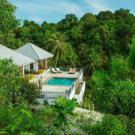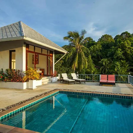 Luxurious Pool Villa With Great Sea View Koh Phangan med 3 sovrum, som ligger 2 km från Mae Haad Beach, erbjuder lekområde och biljardbord för gästerna. Villan, som erbjuder möjligheter till bordtennis, biljard och yoga i området, ligger cirka 10 minuters bilresa från Srithanu Beach.
